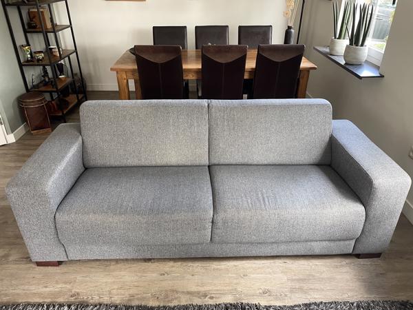Gratis af te halen: nette grijze bank en bijpassende fauteuil, niet doorgezakt, uit rook- en diervrij huis. Breedte bank 213 cm, stoel 96 cm. Beide: hoogte 77 cm, lengte 80 cm, lengte zitting 50 cm.
