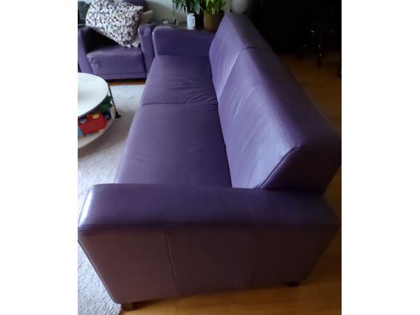 Lange donkerpaarse leren bank