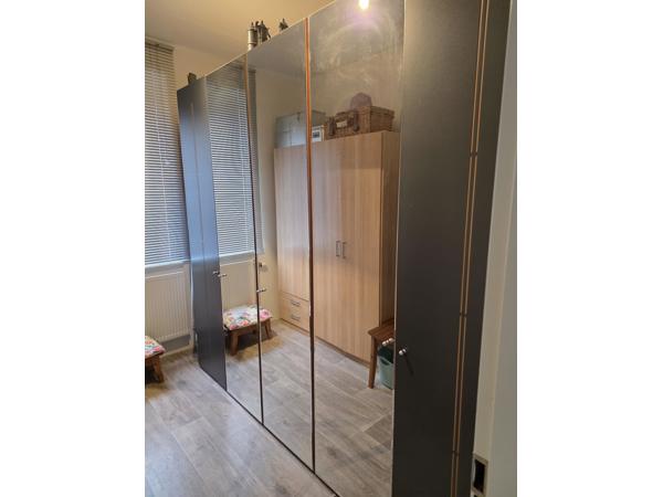 Wegens verhuizing bieden we een grote antraciet met houtkleurige linnenkast aan. Zelf uit elkaar te halen.