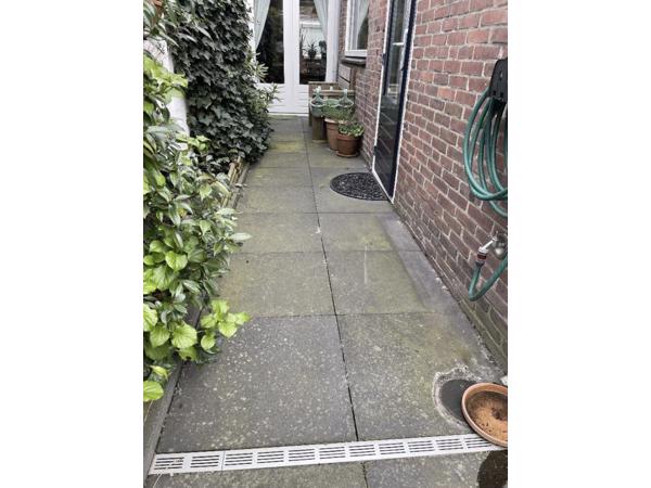 Mooie, grote terrastegels. Zien er als nieuw uit als ze schoon gespoten zijn. Incl. 20 stuks opsluitbanden van 1m p/stuk, en evt ook het geel zand en 2 goten. Kortom, ideaal voor een mooi terras!