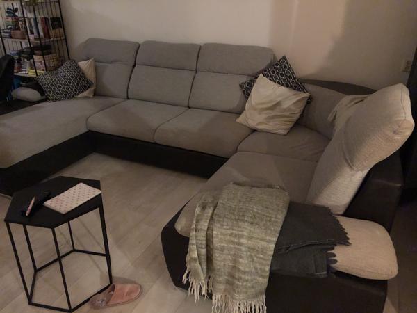 Grote U-bank Gratis afhalen tot en met vrijdag 6 of zaterdagochtend 7 maart. De Bank heeft gebruik sporen. Kon als slaapbank worden gebruikt, maar er is een plank kapot. (Deze is volgens mij makkelijk te maken) Hoofdsteunen doen het nog wel. Onder de lounge zit, is een opbergruimte. Maten: Breedte 3,5 meter Diepte lounge 1,8 meter Diepte hoekzit 2 meter