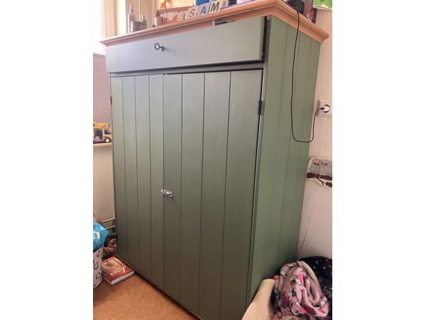 IKEA kast half hoog. Slot van lade werkt, van kastjes niet meer, vandaar zelf een oplossing gemaakt (zie foto). Stevige planken en kast ziet er nog verrassend mooi uit! 109 breed 137 hoog en 50 diep. Zou hem het liefst dit weekend nog weg hebben. De kast is al gedemonteerd en kan zo mee! Zit nog een extra plank bij.