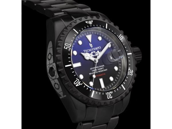 Nieuwe niet gedragen duikhorloge Tecnotempo TT.2000.SNB Professional Diver 200ATM WR - White Submarine Het Tecnotempo-horloge is gemaakt met eerste keus componenten: 316L staal met zwarte PVD-behandeling Betrouwbaar Japans automatisch uurwerk (24 juwelen, 41 uur gangreserve met maximale lading) Unidirectionele gepolijste zwarte keramische lunette, met 120 klikken en lichtgevende lunette-index Zwarte kast - Blauwe plaat Limited Edition nr: 54 van 100 Heren Mechanisch automatisch staal Antimagnetisch Dik (4,5 mm) saffierglas Waterbestendig: 2000 meter / 6500 voet De omtrek van het horloge is ongeveer 23cm nog internationale garantie zie foto!