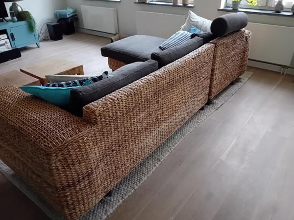 Hoekbank  160x280cm met rotan basis Hoekbank  160x280cm met rotan basis Hoekbank  160x280cm met rotan basis