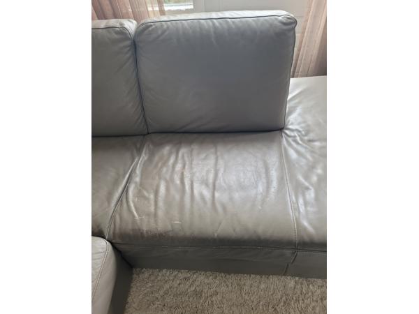 Grote hoekbank Meg 1 zitplek waar leer niet zo mooi meer is. Leuk.kleed erover en je ziet er niets van