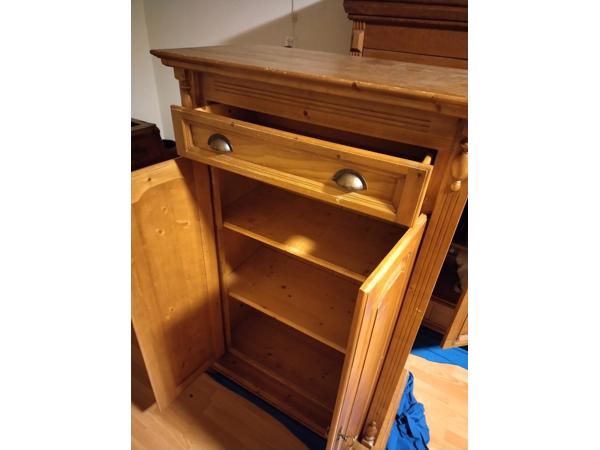 Mooie, simpele, houten kast! Doe hem weg omdat ik een nieuwe heb (een familiestuk). In goede staat, met een lade bovenin, en twee uitneembare planken. 48x98x150cm.
