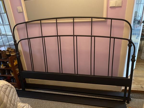 Ikea matzwart bedframe 180x200. Compleet met 8 inbusschroeven. Zo goed als nieuw alleen gebruikt als logeerbed. Ivm verhuizing en overcompleet geef ik hem graag weg Exclusief bedbodems en matrassen.