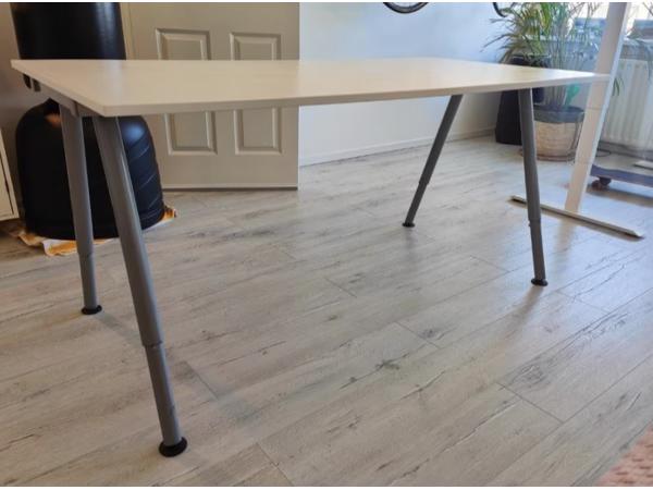 Een mooi en stevig bureau van Ikea. 160*80cm. De hoogte is verstelbaar (zeker ook geschikt voor lange (en kleine) mensen). Het bureau heeft enkele kleine gebruikssporen. Het bureau is in hoogte verstelbaar. Ik had er zeer zware apparatuur op staan (ruim 500kg) waardoor ik voor de zekerheid bouten door de poten heb geschroefd (om zeker te weten dat het bureau op de juiste hoogte zou blijven/de hoogte te fixeren). Maar deze zijn makkelijk te verwijderen indien gewenst (en elke hoogte is nog steeds mogelijk). Dit was enkel een borging ivm de dure apparatuur.