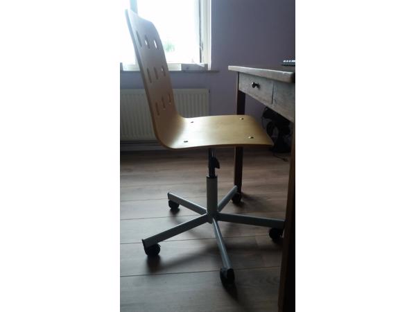 Bureaustoel Jules IKEA berken/zilverIn hoogte verstelbaar, wielen.Geen beschadigingen, wel al een aantal jaar in gebruik. Beschrijving: Hoogte Seat is verstelbaar voor maximaal comfort.Productafmetingen:Breedte: 56 cmDiepte: 56 cmZitbreedte: 44 cmZitdiepte: 42 cmMin zithoogte: 41 cmMax zithoogte: 53 cmOphalen in Soest.