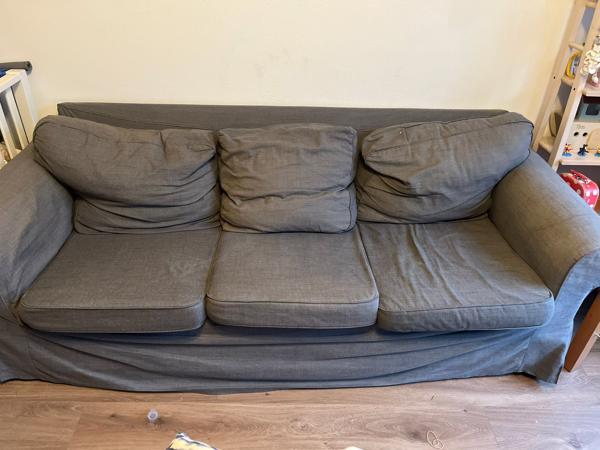 Ikea Ektorp bank grijs, 3 persoons. In gebruikte staat, maar zit nog heerlijk. Per direct op te halen in Gouda