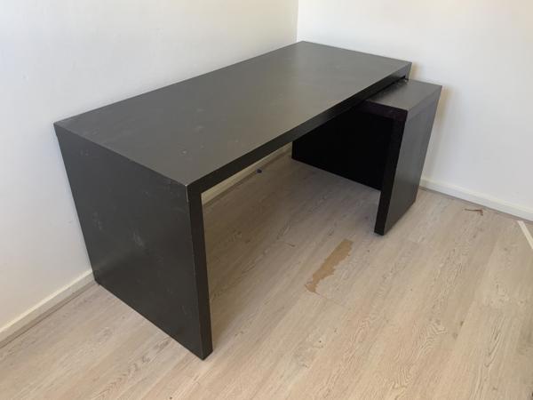 Dit IKEA-bureau van het type MALM heeft jarenlang trouwe dienst gedaan in mijn studentenkamer. Nu dat ik iets ruimer ga wonen, gun ik mezelf een wat groter werkblad. Het meubel heeft hier en daar zeker een kras, maar structureel zit het nog goed in elkaar. Met een likje verf kan hij nog wel een paar jaar mee.
