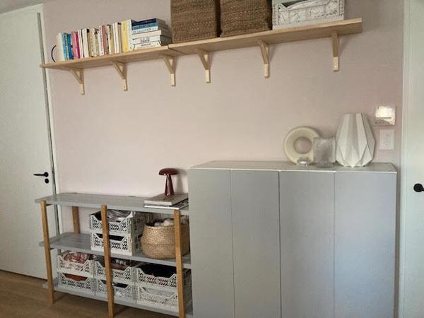 Kledingkasten van IKEA Platsa met lichtgrijze smastad deuren. Ondiep model van 40 cm diep, 60 cm breed en 120 cm hoog. Er zijn twee kasten beschikbaar, incl. deuren en hanggedeelte. Leuk voor de kinderkamer of hal!