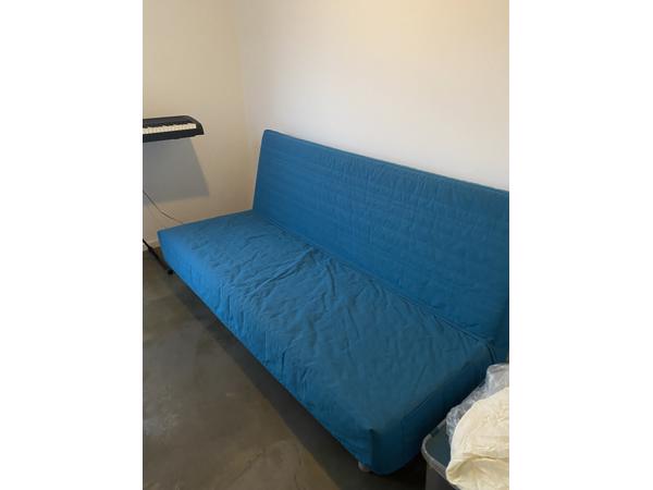 Ikea beddinge slaapbank met hoes. Uitgeklapt is dit een ruim bed van 140 bij 200 cm. Onderstel, matras en hoes zijn volledig intact, de onderhoes (om het matras) is wel beschadigd, maar daar merk je met hoes en bij het opmaken van het bed niets van.