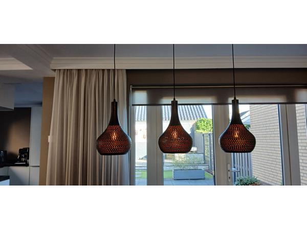 Soft Industrial! Deze bruine hanglamp van metaal past perfect in deze woonstijl. Industrieel, maar door de ronde vormen net wat 'zachter'. De woonstijl soft industrieel betekent eigenlijk sfeervol industrieel. Een mix van stoer en zacht. Deze bruine hanglamp is gemaakt van metaal en elke kap heeft een opengewerkte structuur, zodat de led filament lamp (incl.) subtiel te zien is. De kappen hebben een bijzondere afwerking waardoor er een mooie kleurencombinatie is ontstaan van zwarte, grijze en roestbruine tinten. De binnenkant is karamel- ofwel goudkleurig met een subtiele glans. Het creëert extra warm en sfeervol licht.