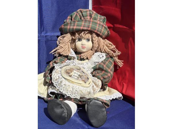 Pop , compleet aangekleed met een mandje met potpourri in de handen .