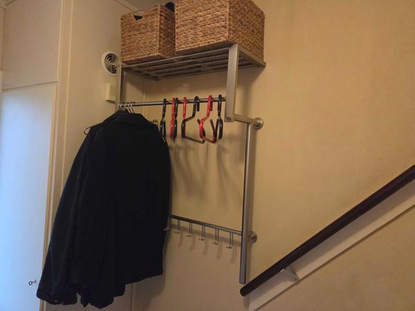 Metalen kapstok met hangers. Gratis af te halen. Prima conditie. Zonder de jassen op de foto.