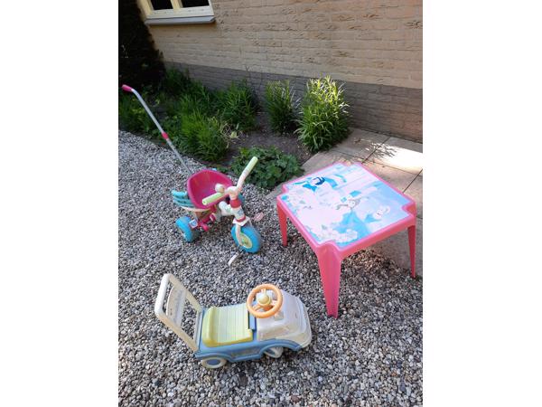 3. Kinderfietsje, auto en tafeltje met Disneyprint