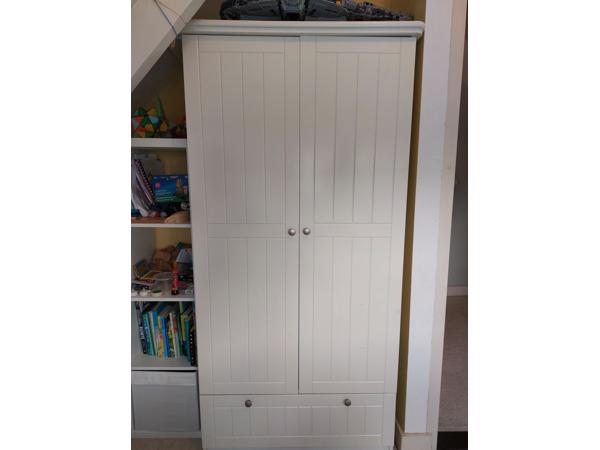 De kast heeft 6 scharnieren, één vd scharnieren werkt niet meer goed. Maar de kast gaat weg, omdat onze zoon zijn kamer aan het verbouwen is en een kleinere kast wil. De kast zullen we dit weekend uit elkaar halen. Hopelijk lukt dit zonder de kast te beschadigen. De maat vd kast is h187 b90 d50cm