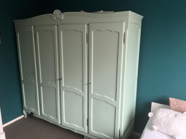 Ouderwetse klerenkast, geschilderd, met veel opbergruimte voor kleren en speelgoed