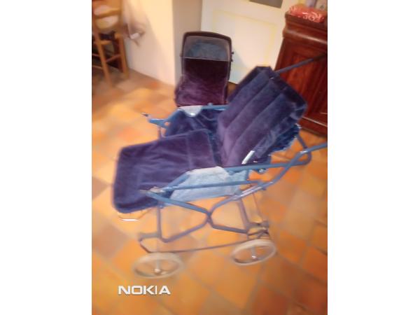 Kleur: donkerblauw en binnenzijde :zie foto. Met matrasje Met regendek ( met extra rand om omhoog te zetten: zie foto) Rem: op voorwielen ( zie foto). Wandelwagen: met voetenzak: zie foto In september1980 nieuw gekocht.