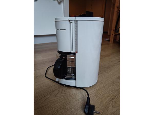 Koffiezetapparaat. Werkt nog heel goed, lekt alleen een klein beetje als je het water er vast in doet maar de koffie nog niet laat lopen. Het dienblad waar die op stond kun je er eventueel bij krijgen.