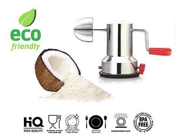 Perfect voor het schrapen van kokosnoot.Bescherm uw handen tegen snijwonden. Scherpe, corrosiebestendige roestvrijstalen messen voor effectief schrapen van kokosnoten.Vacuümbasis voor stevige grip tijdens gebruik.Compact en elegant ontwerp.Gemakkelijk schoon te maken en gemak.