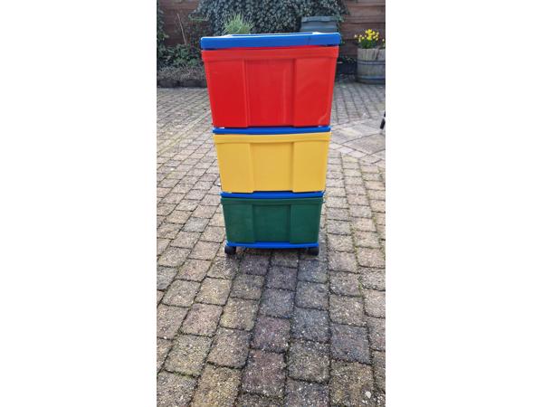 ladekastje om speelgoed op te bergen; hoogte 68 cm, diepte 40 cm, breedte 32 cm.