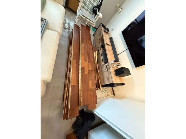 Gratis ophalen: een lamelparket vloer van ongeveer 40 m² met een echte houten toplaag.