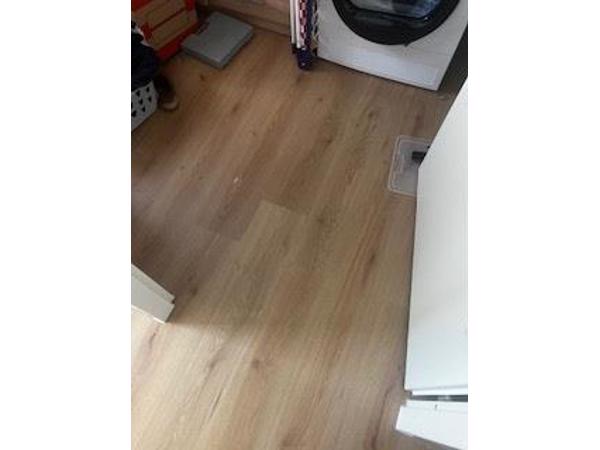 te koop aangeboden: een bijna nieuwe laminaatvloer van 60 m², slechts 1 jaar oud! De vloer wordt compleet verkocht inclusief plinten en ondervloer.