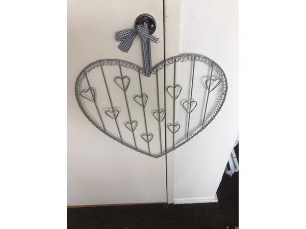 leuk nieuw metalen hart om kaarten in de 10 kleine vakjes te klikken ook leuk in kinderkamer-leuk voor kaarten--tekeningen --foto, s-hoog 42 cm---breed 44 cm met lint om op te hangen------ nieuw leuk houten kapstokje met houten diertjes-------leuk op haar of zijn kamer maar ook in de gang kan per stuk