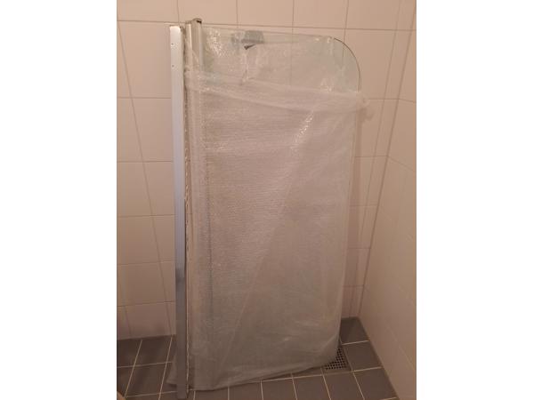 3. Ligbadglaswand door verhuizing .Groot 0,64×1.48 m met muurbevestiging
