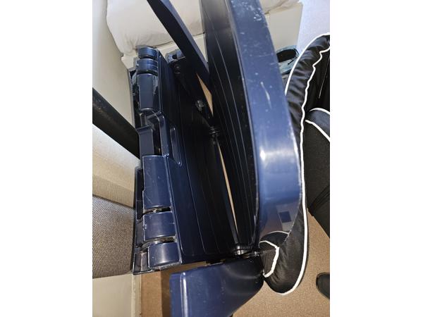 Ligbed kunststof, inklapbaar, blauw. Kussen zwart.