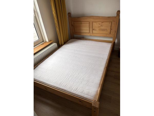 Omdat de logeerkamer een babykamer wordt doen we dit tweepersoons bed weg. Het is nauwelijks gebruikt en ziet er daardoor nog heel goed uit, maar het kan ook heel makkelijk geschilderd worden.