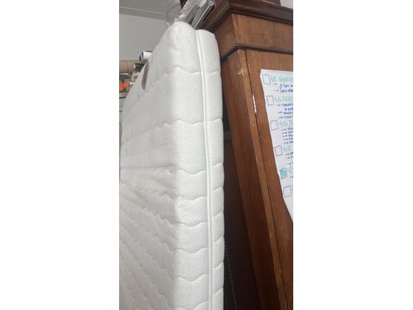 Goed matras, door mijn dochter gebruikt, hoes is af te ritsen en moet wel even gewassen worden, zit onder andere een vlek van lekkende pen in.