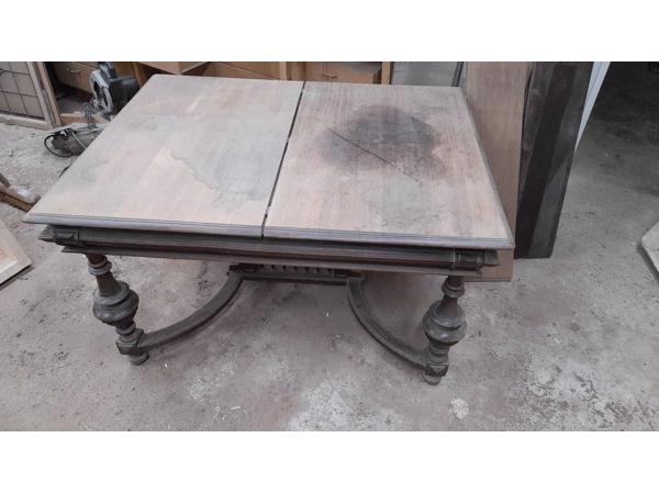 Deze Mechelse tafel kan weg naar een liefhebber. Het blad heeft enkele vlekken , maar voor wie de tafel wil schilderen is dit een goede start ! Bladmaat 100 x 130, met uitschuifbladen er in wordt de lengte 177. Hoogte is 75 cm.