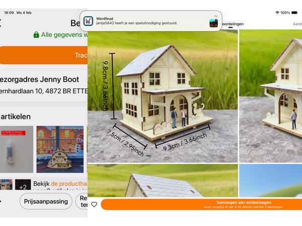 Aanbod: Miniatuurhuisjes van blank hout zijn redelijk klein, wegens plaatsgebrek.