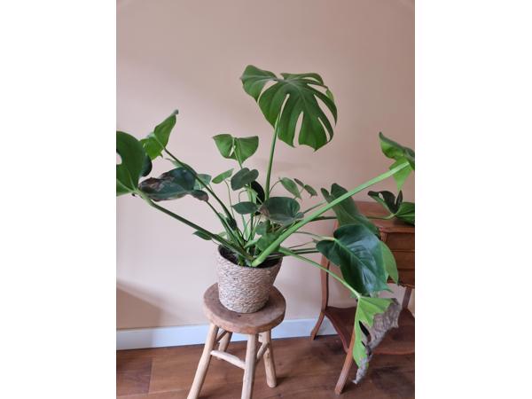Mooie Monstera kamerplant. Mag weg in pot, zonder de kruk op de foto.