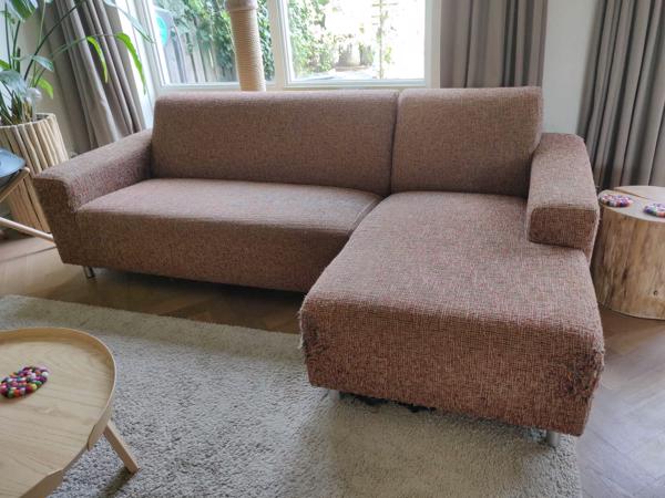 De bekleding is volledig versleten (kapot gekrabd door onze kat). Als hij opnieuw bekleed wordt is hij weer prachtig!