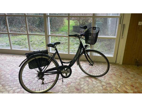 Nette damesfiets stadsfiets met lage instap, mand voorop