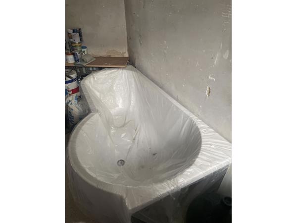 Nieuw hoekbad met bol badscherm, regendoucheset en badafvoer