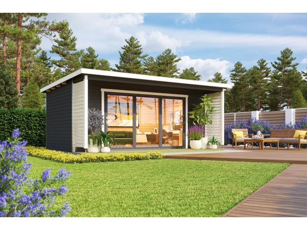 Het Tuinhuis Liverpool 3 van het merk Lasita Maja heeft 100cm oversteek aan de voorzijde en een fundamentmaat van 550cm(b) x 300cm(d). De 44mm dikke vurenhouten wanddelen zijn uitgevoerd met een dubbele veer en groef. De stapelbouw methode in combinatie met hoekpalen en schroefsysteem zorgt voor een zeer sterke constructie. De hoeken van dit tuinhuis worden afgewerkt met aluminium covers.Dit prachtige moderne tuinhuis met haar 3-delige luxe aluminium vouwdeur is bijzonder geschikt als tuinkamer, atelier of als tuinkantoor. De luxe deuren zijn uitgevoerd met isolatieglas. De horizontale shutters garanderen wisselende en speelse lichteffecten. Door de meegeleverde houten vloer staat het tuinhuis vrij van de ondergrond waardoor deze van binnen droog en schoon blijft. De vloerconstructie bestaat uit hogedruk geïmpregneerde onderliggers (70x45mm) en vuren vloerdelen voorzien van veer en groef (90x18mm). De vloerdelen voor buitengebruik zijn verduurzaamd door impregnatie en hebben een lichtgroene kleur. Het basispakket wordt geleverd inclusief montagehandleiding, onderdelenlijst, alle benodigde bevestigingsmaterialen en deur- en raambeslag. Dakbedekking is optioneel bestelbaar, wij adviseren u hiervoor rubberfolie te gebruiken (EPDM). Dit bouwsysteem is door de handige doe-het-zelver prima zelf te monteren, wel raadzaam om dit met twee man te doen. Dit tuinhuis wordt als bouwpakket bij u thuis geleverd.
