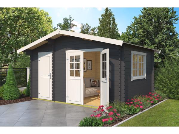 Het Tuinhuis Keila 34 bestaat uit 2 ruimtes en heeft een fundamentmaat van 425cm(b) x 280cm(d). De 34mm dikke vurenhouten wanddelen zijn uitgevoerd met veer en groef en een wind en waterkerende hoekverbinding. De traditionele blokhut-stapelbouw methode zorgt voor een sterke en stabiele constructie. Dit praktische tuinhuis met haar dubbele en enkele volhouten deur is bijzonder geschikt als tuinkamer in combinatie met een berging. De dubbele deur en het dubbele draai/tuimel raam zijn voorzien van echt glas, de houten kruisverdeling wordt los meegeleverd waardoor u zelf de keuze heeft of u deze wilt gebruiken. De voorzijde van dit tuinhuis is extra beschermd tegen de regen door de oversteek van 50cm. Door de meegeleverde houten vloer staat het tuinhuis vrij van de ondergrond waardoor deze van binnen droog en schoon blijft. De vloerconstructie bestaat uit hogedruk geïmpregneerde onderliggers (45x45mm) en vuren vloerdelen voorzien van veer en groef (90x15mm). Het basispakket wordt geleverd inclusief montagehandleiding, onderdelenlijst, alle benodigde bevestigingsmaterialen, deur- en raambeslag en een houten windankerset. Dit tuinhuis wordt inclusief een basis dakbedekking (asfaltpapier) geleverd, deze dakbedekking is geschikt voor tijdelijk gebruik of als onderlaag voor een kwalitatief hoogwaardiger dakbedekking (optioneel bestelbaar, zoals bijvoorbeeld dakshingles die in diverse kleuren beschikbaar zijn). Het stapelbouw blokhut systeem is door de handige doe-het-zelver prima zelf te monteren en dit tuinhuis wordt als bouwpakket bij u thuis geleverd.