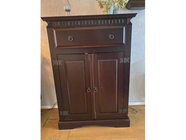 Leuke kast. 1lade, 3 planken. Paar kleine beschadigingen maar echt nog te mooi om weg te gooien.
