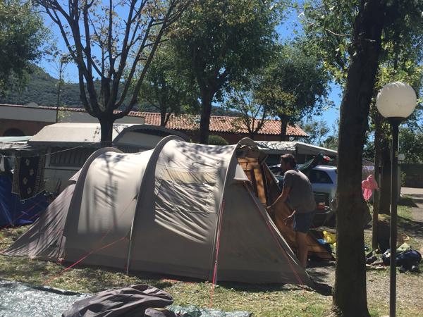 Er is een lusje van de binnentent af (geen probleem in het gebruik) en de tent heeft uiteraard de nodige gebruikssporen maar wij doen hem nu weg omdat de extra luifel niet goed meer aan te ritsen is (en niet nieuw meer te koop), tenzij je een tangetje gebruikt.