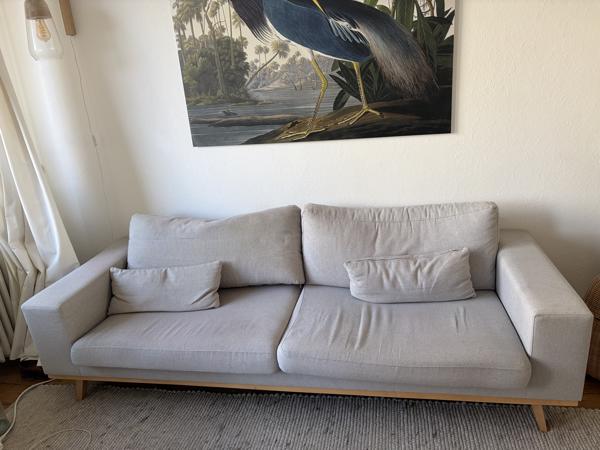 Nous living 3-zitsbank torino, grijs met houten poten