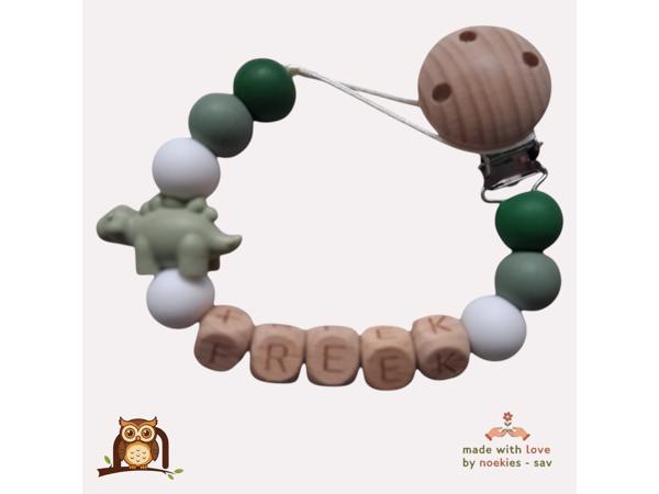 nr 5 noekies naam speenkoord dino groen blauw wit