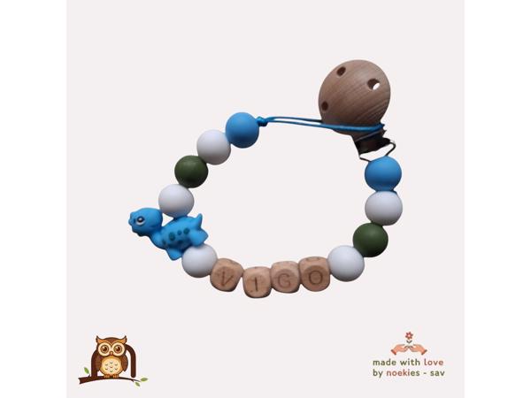 nr 5 noekies naam speenkoord dino groen blauw wit