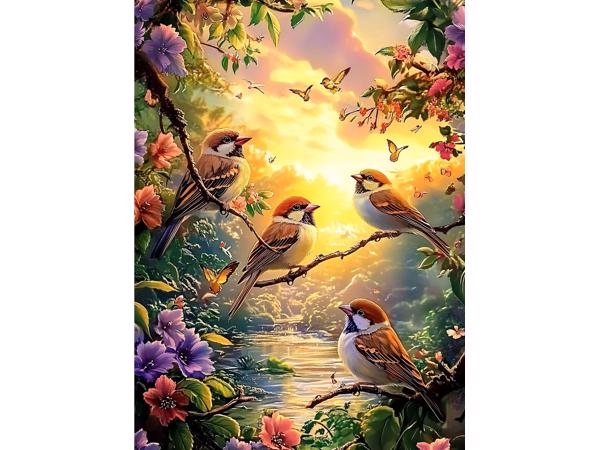 Mooie Diamond Painting met vogeltjes en bloemen. Deze Diamond Painting is 50x40cm. Painting vlak is 45x35cm. Vierkante diamantjes.