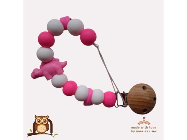 Handgemaakt. Thema Dino. Speenkoord met dino stekel in de kleuren Roze en wit. Met deze speenkoord, raakt je kleintje zijn of haar speentje niet meer kwijt. De handige stevige klip is bedoeld voor aan de kledingstukken die je kind draagt, autostoelgordel, kinderwagen. Voor zowel thuis gebruik als voor onderweg. Totale lengte 28cm. Erg leuk om cadeau te geven. Niet geschikt als speelgoed of bijtring. Laat je kleintje nooit alleen ermee. Het speentje kan ook niet meer op de grond vallen. Speenkoorden mogen volgends NEN12586 veiligheidnorm, inclusief lus, zonder clip, maximaal 22 cm lang zijn. - Noekies .com kan niet aansprakelijk worden gesteld voor enige schade, letsel of ongelukken die voortvloeien uit het gebruik van dit speenkoord, zowel direct als indirect. Een speenkoord Is niet bedoeld om op te bijten. Het gebruik van een speenkoord is op eigen verantwoordelijkheid.