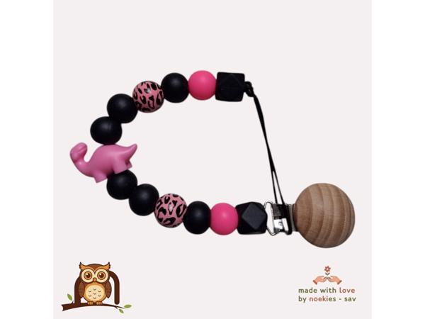 nr 29 noekies Speenkoord dino panterprint zwart roze